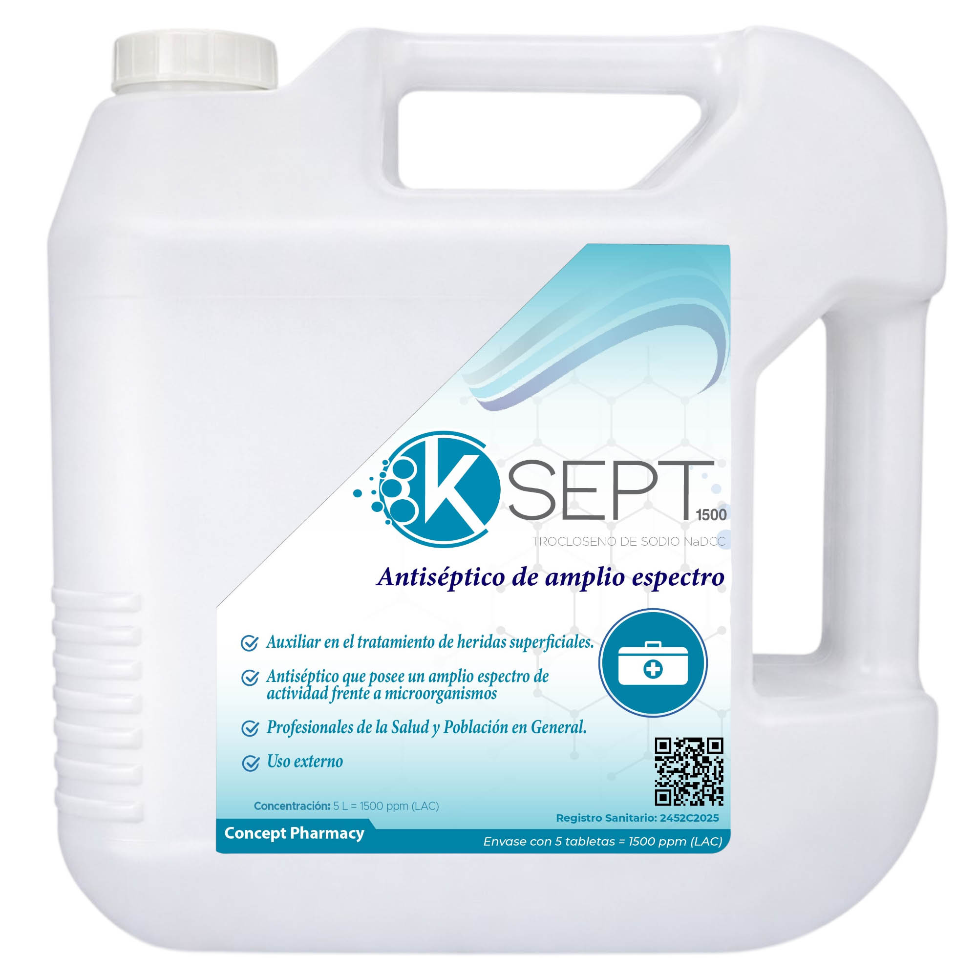 K Sept 1500 ppm Trocloseno de Sodio NaDCC envase de 5 litros