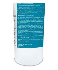 | 350.286.434.00.00 | Trocloseno de sodio (NaDCC) tableta efervescente; en 1 L de agua para obtener 750 ppm de cloro latente activo (LAC); envase con 100 tabletas |
