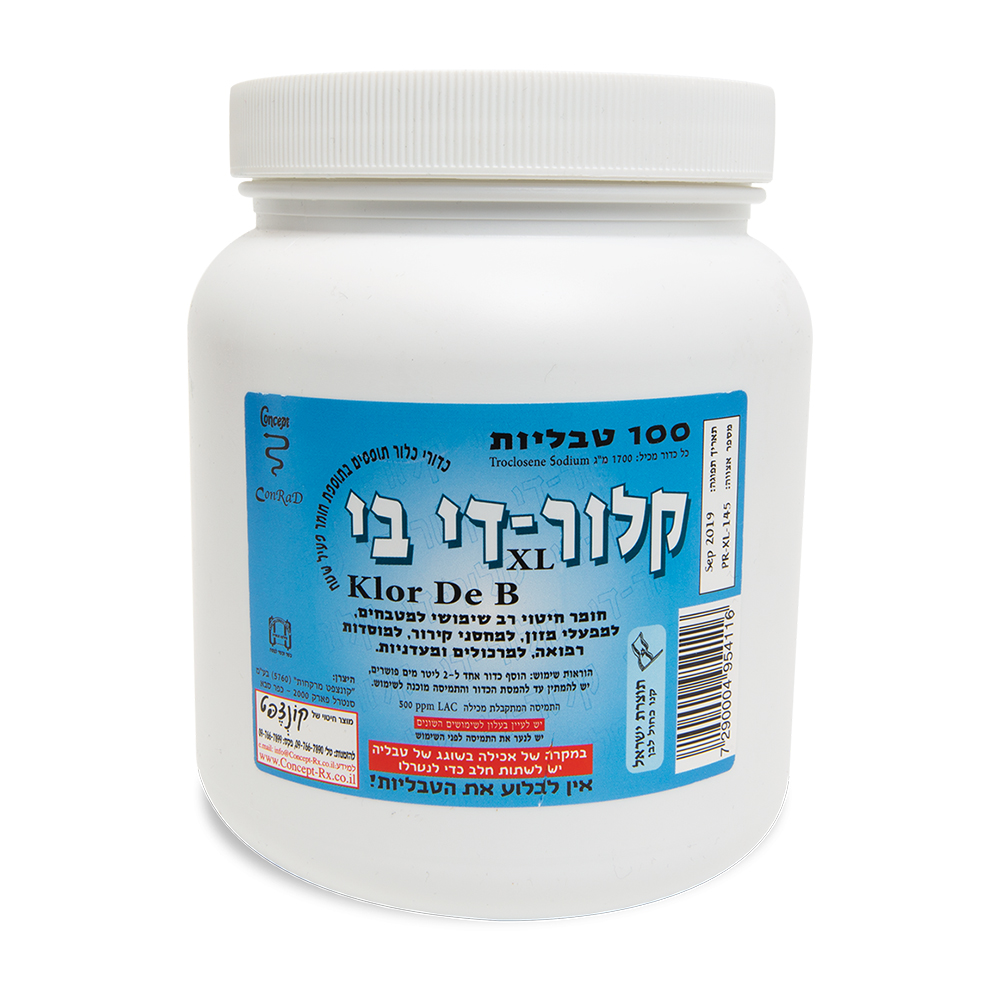 Klor De 1000 ppm, Klor Bac 1000 ppm, Taharsept 5000 ppm, Tahartaf 300 ppm, Taharmayim 5.0 mg, Klor De Blue Xl 1000 ppm.